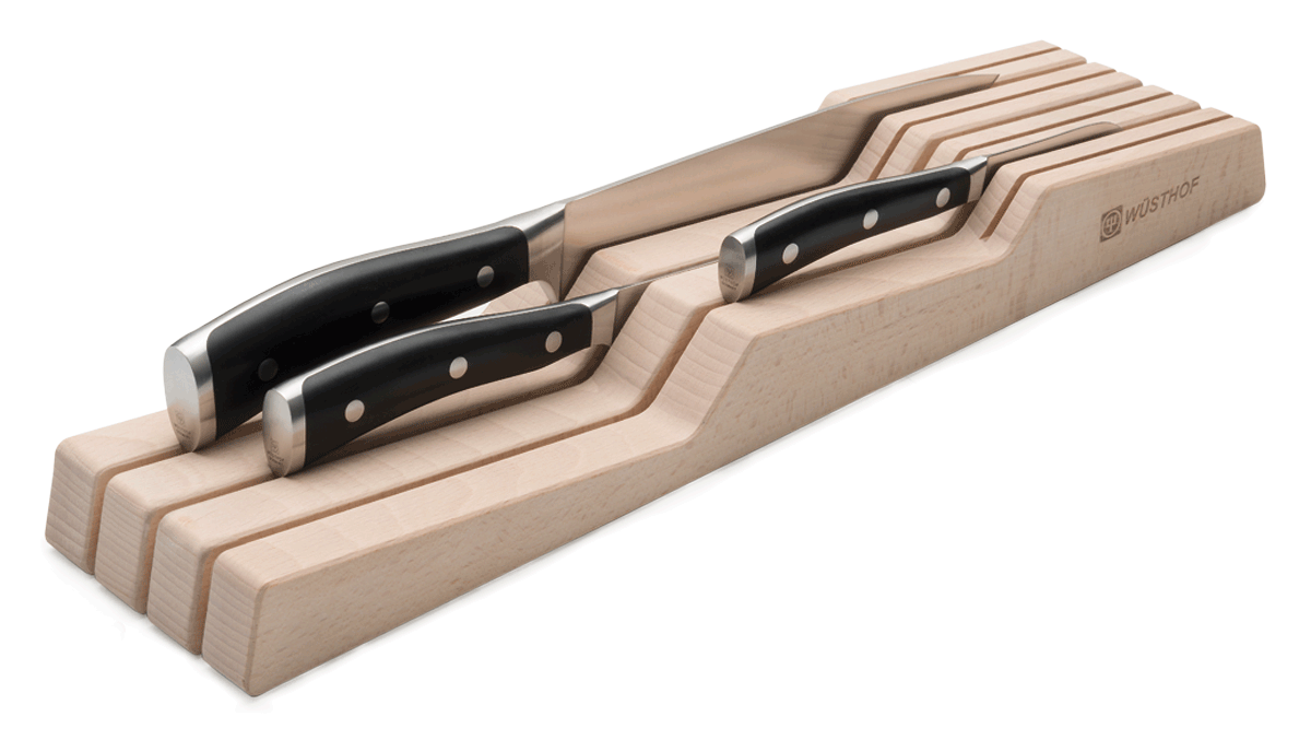 Bestehend aus Schneidbrettern, Messerblöcken und Schubladeneinsätzen.